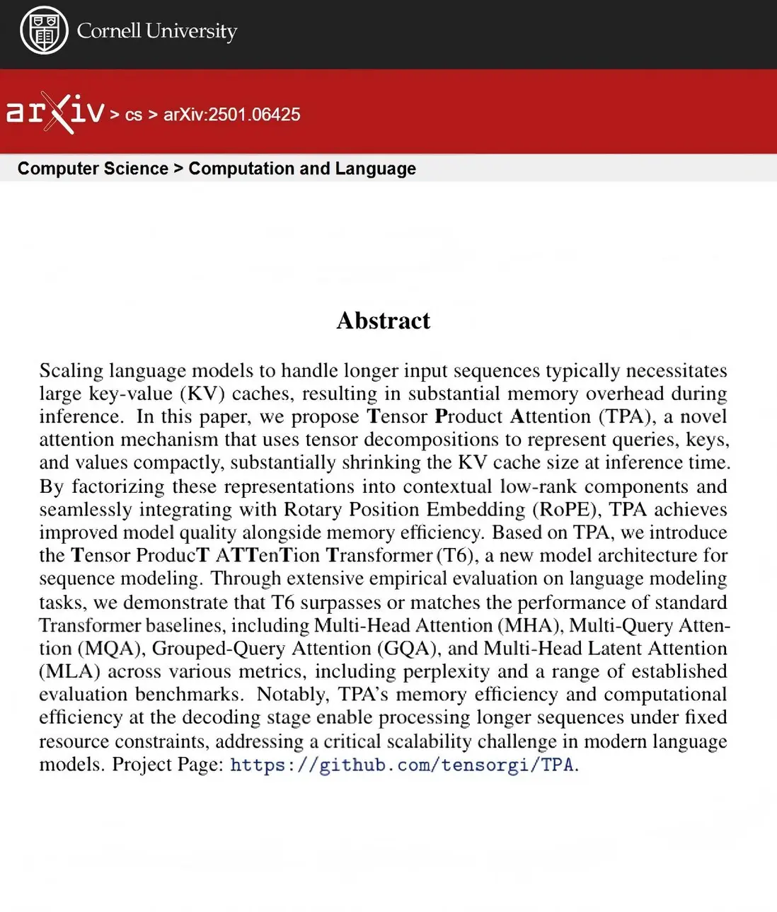 - 引入T6架構:基於TPA的新Transformer模型,在語言建模任務中驗證其有效性。