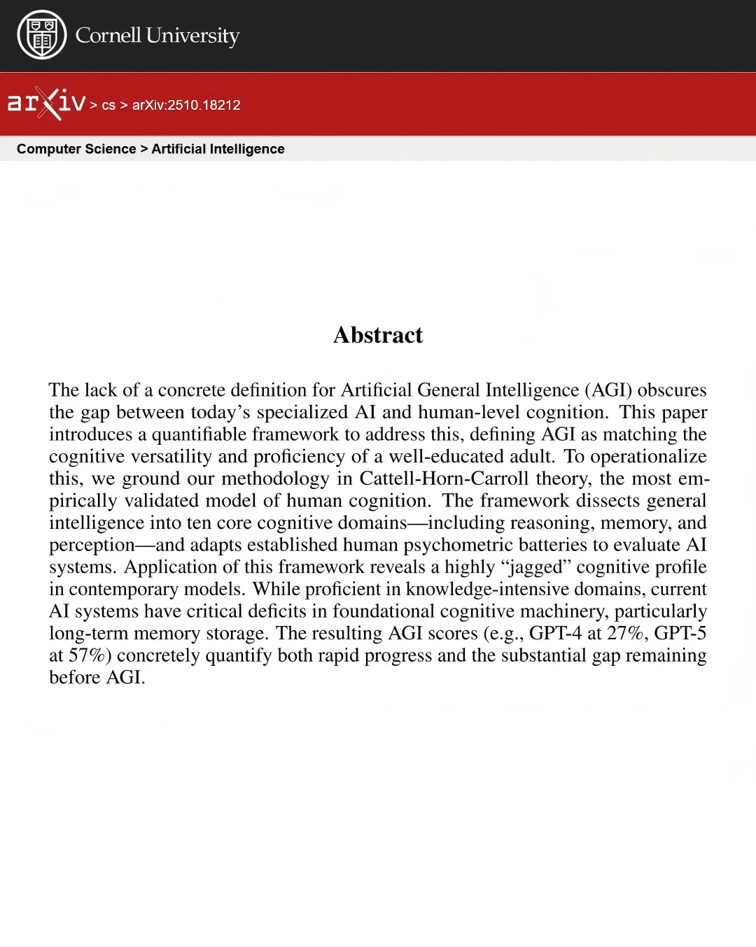 本文旨在提出一個全面、可量化的框架,以澄清AGI的定義,並精確測量AI系統在通用認知能力上與人類的差距。其核心目標是將AGI操作化定義為“能夠匹配或超越一位受過良好教育的成年人的認知廣度和熟練度”,從而為評估AI系統提供一個堅實、統一的基準。