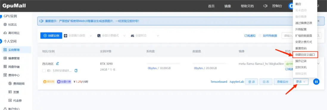 複製下方鏈接至瀏覽器,直達鏡像社區一鍵體驗LIama3!https://gpumall.com/image-list