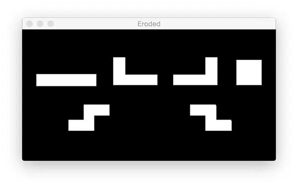 Figure 22:Using OpenCV we can erode contours, effectively making them smaller or causing them to disappear completely with sufficient iterations. This is typically useful for removing small blobs in mask image.