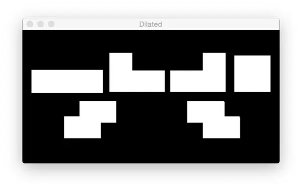 Figure 23:In an image processing pipeline if you ever have the need to connect nearby contours, you can apply dilation to the image. Shown in the figure is the result of dilating contours with five iterations, but not to the point of two contours becoming one.注意不要讓兩個圖形重疊了