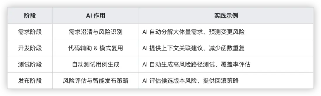 落地建議:優先從“高摩擦+高風險”環節開始應用 AI(例如測試自動化與發佈風險評估),而不是全流程一次性鋪開。