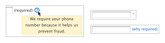 After A/B testing different ways to indicate that the field was required and why it was required, we found that the combination of a link and a tooltip helped users recognize the need to fill in their phone number. This solution drastically decreased the rate of errors for this field.