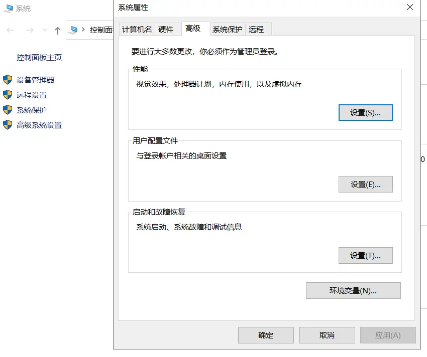 2、選擇“高級系統設置”,然後在彈出框中點擊“環境變量”