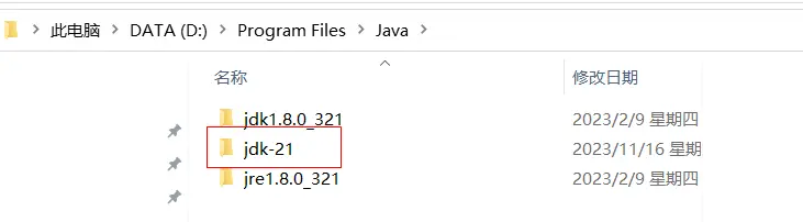 jdk8已安裝過,現在以jdk21安裝為例。