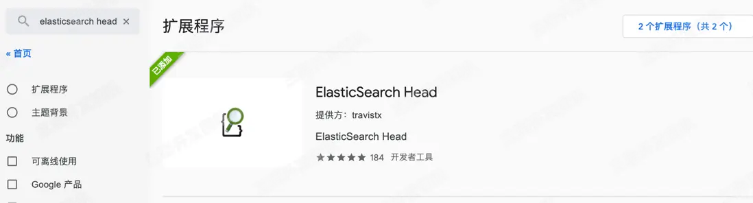 點擊添加至chrome,即可在擴展程序找到打開elasticsearch head。