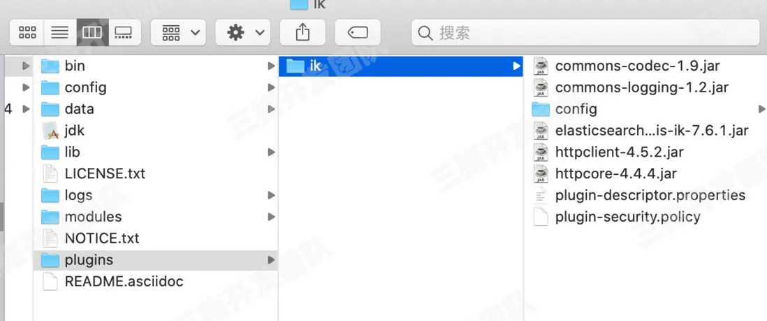 將下載好的ik文件放到elasticsearch的plugins文件夾下面,重啓elasticsearch即可生效。