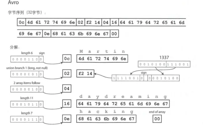 這裏再一次用到之前的案例,Avro 對於同樣的內容僅僅使用32個字節的編碼。