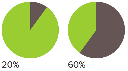 …and get two pie charts, one showing 20%, and the other one showing 60%. First, we will explore how we can do it with inline styles, and then we could always write a short script to parse the text content and add said inline styles, for code elegance, encapsulation, maintainability, and perhaps most importantly, accessibility.