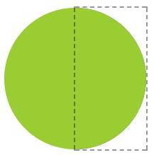 Our pie chart currently looks like Figure 4. This is where the fun begins! We can start rotating the pseudo-element, by applying a rotate() transform. For the 20% we were trying to achieve, we can use a value of 72deg (0.2 × 360 = 72), or .2turn, which is much more readable. You can see how it looks for a few other values as well, in Figure 5.