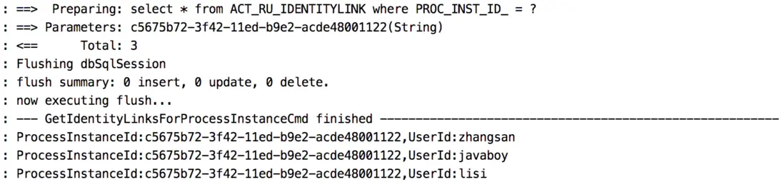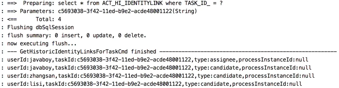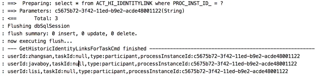 這裏最終其實就是去 ACT_HI_IDENTITYLINK 表中查詢,對應的 SQL 如下: