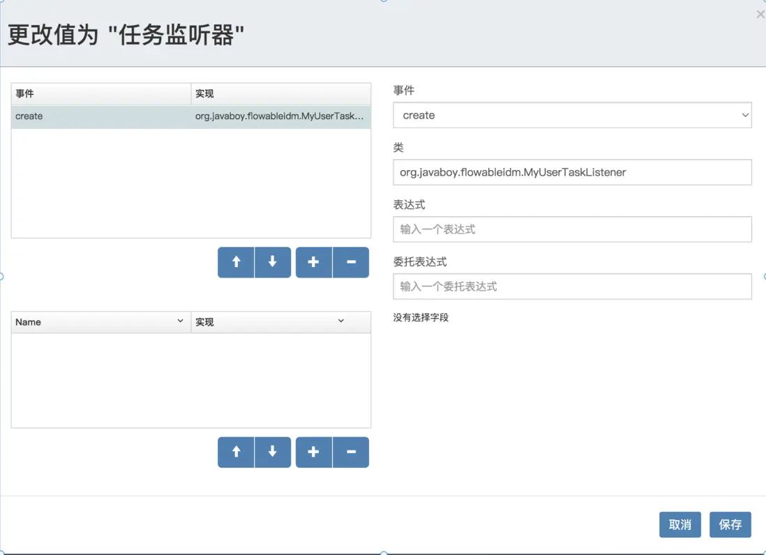然後在繪製流程圖的時候,刪除掉 UserTask 分配的用户,然後重新為 UserTask 設置一個監聽器: