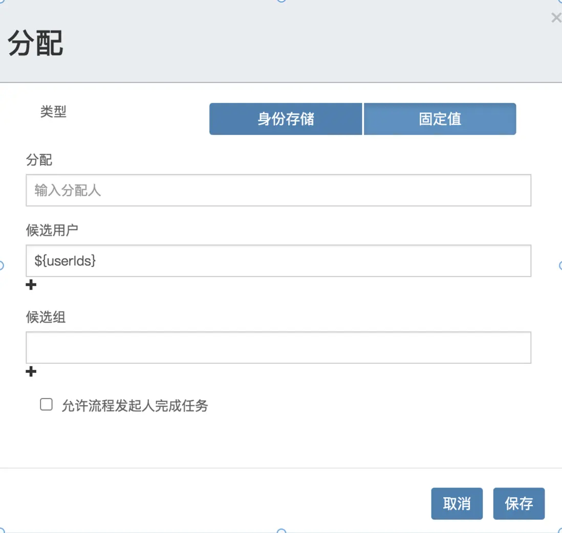 <userTask id="sid-5F901234-AFF1-480E-9D66-2D196B910BA3" flowable:candidateUsers="${userIds}" flowable:formFieldValidation="true"></userTask>
