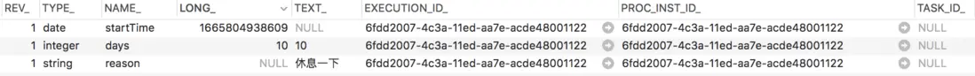 我們打開 ACT_RU_VARIABLE 表來看一下: