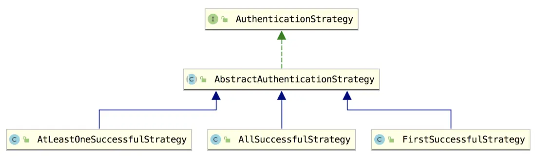 先來整體上看下,負責認證策略的類是 AuthenticationStrategy,這是一個接口,有三個實現類: