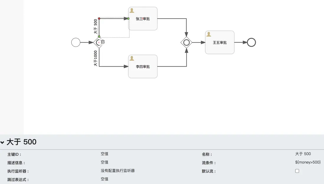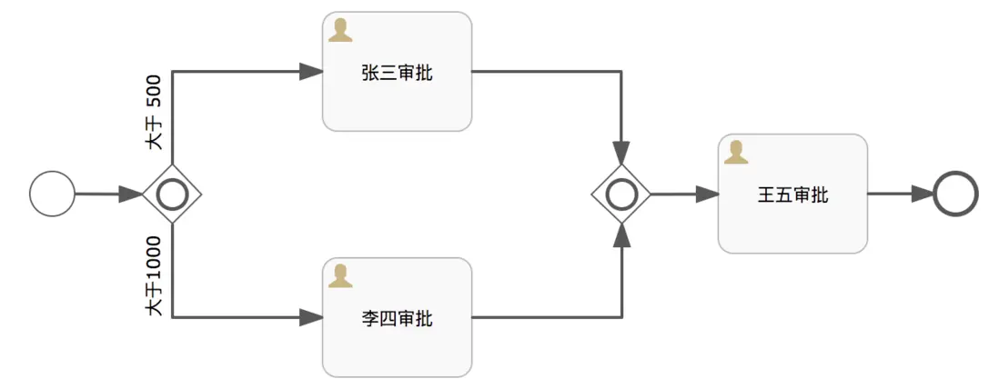 假如説報銷金額大於 500,zhangsan 審批,報銷金額大於 1000,則需要 zhangsan 和 lisi 同時審批,且 zhangsan 和 lisi 審批無先後順序。