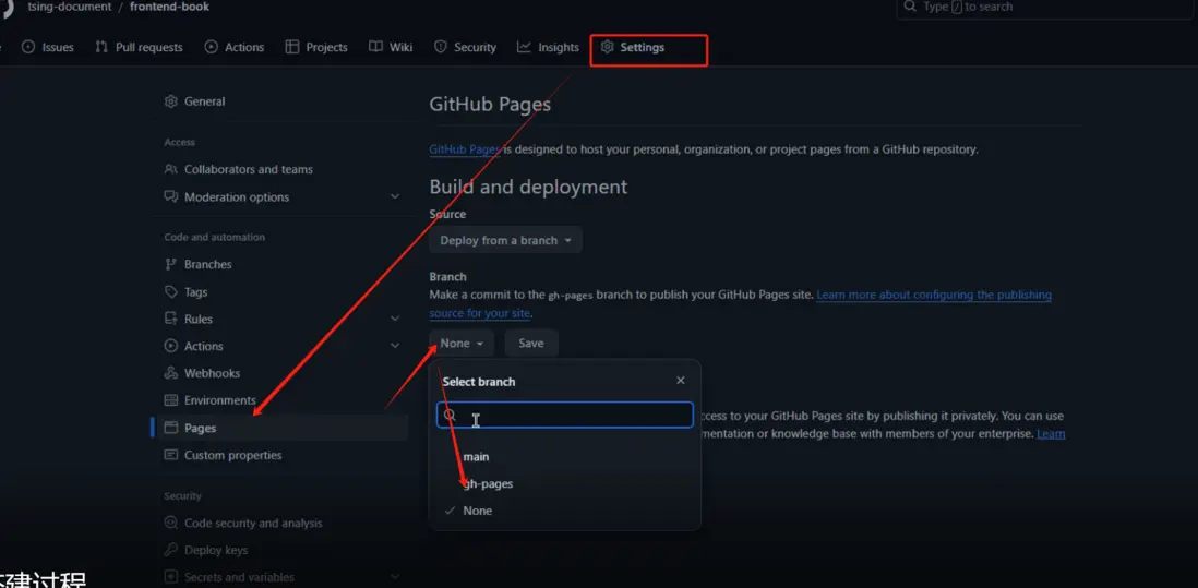 將代碼上傳到倉庫種,源代碼分支是 main 分支。用來展示頁面的分支是 gh-pages。代碼上傳完成之後會自動創建這個分支。