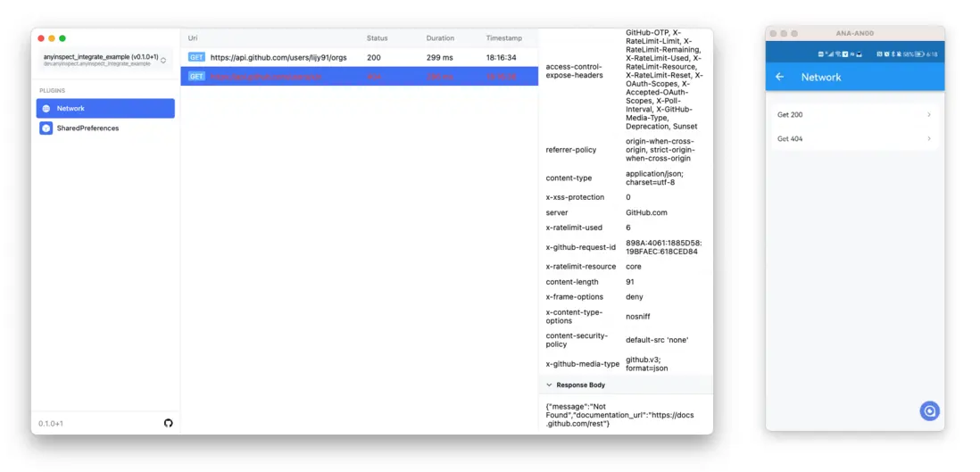 AnyInspect 是一個用於調試您的 Flutter 應用的工具,使用 Dart / Flatter 編寫。當前你可以使用 AnyInspect 來檢查應用中的傳出網絡請求或查看 SharedPreferences 數據,未來你甚至可以在 AnyInspect 查看修改應用數據庫的數據。