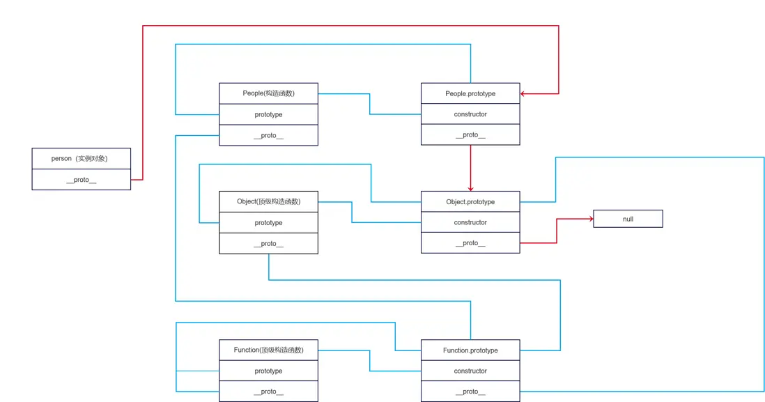 People為構造函數person為由People實例出來的一個對象Object為構造所有對象的頂級基類構造函數Function為構造所有函數的頂級基類構造函數