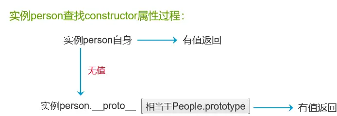constructor整個繼承的流程是:在實例person本身查找,找不到去person.__proto__(People.prototype)找,發現有People.prototype.constructor,並且People.prototype.constructor = People返回它,所以person.constructor = People。