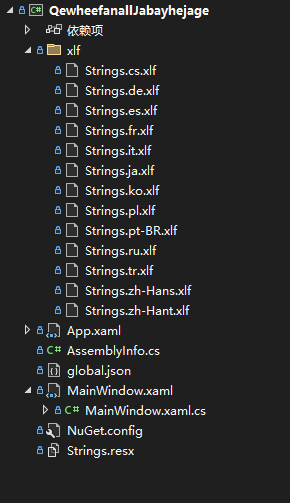 細心的夥伴還能看到,此時在項目裏面被新建了 xlf 文件夾,在此文件夾內充滿了各個語言文化對應的 xlf 文件。這些 xlf 文件是為翻譯人員準備的,方便對接翻譯平台進行翻譯。每個 xlf 文件都會在 obj 文件夾生成對應的 resx 文件,再由 resx 文件生成對應的程序集
