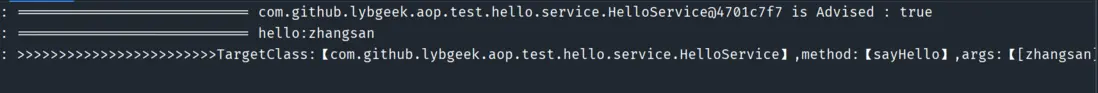: ########################################## BuildCandidateAdvised -->【com.github.lybgeek.aop.test.hello.service.HelloService】 With Advice -->【com.github.lybgeek.interceptor.LogMethodInterceptor】 SUCCESS !