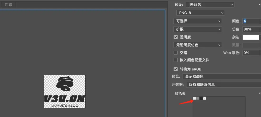 注意圖像顏色位數最好越小越好,這樣轉化後的圖像不會過大,同時背景最好是透明的,因為透明元素不會被XML文件進行標記,達到節約空間的目的,這裏我們以PNG仿色4位的位圖為例子。