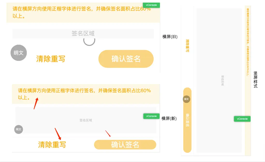 - 強制豎屏模式:書寫簽名時必須要橫向輸入,除非能夠關閉手機橫屏模式(依賴用户操作-可兜底考慮彈窗提示)或者鎖定🔒網頁方向