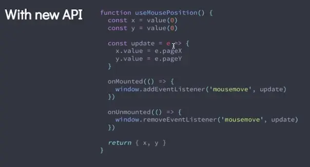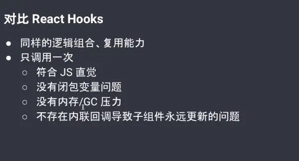 可以發現和 react hook邏輯封裝形式很像,就是在組件內定義響應式的變量,並封裝變量更改的邏輯,在最後把變量暴露出來,供其他組件使用。