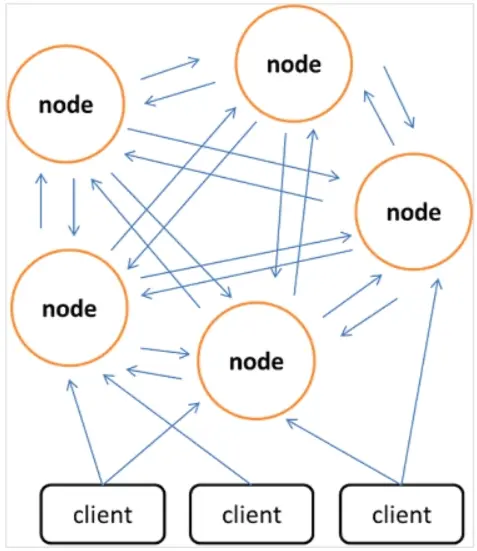 - 以Redis集羣模式為例,它沒有中心節點,具有線性可伸縮的功能。