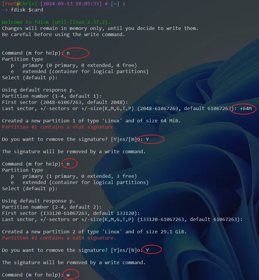 mkfs.vfat ${card}1 mkfs.ext4 ${card}2