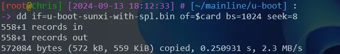 dd if=u-boot-sunxi-with-spl.bin of=$card bs=1024 seek=8 sync