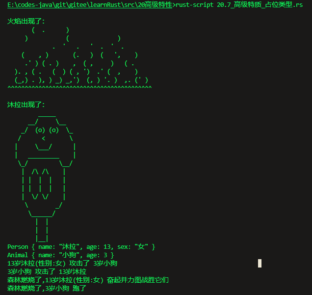 println!("{},{}歲{}(性別:{}) 奮起併力圖戰勝它們",danger.happen(), self.age, self.name, self.sex);
