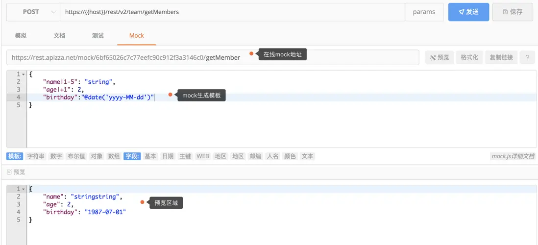 apizza mock 是基於mock.js 開發的。具體文檔可以 參見 mock.js 詳細文檔。