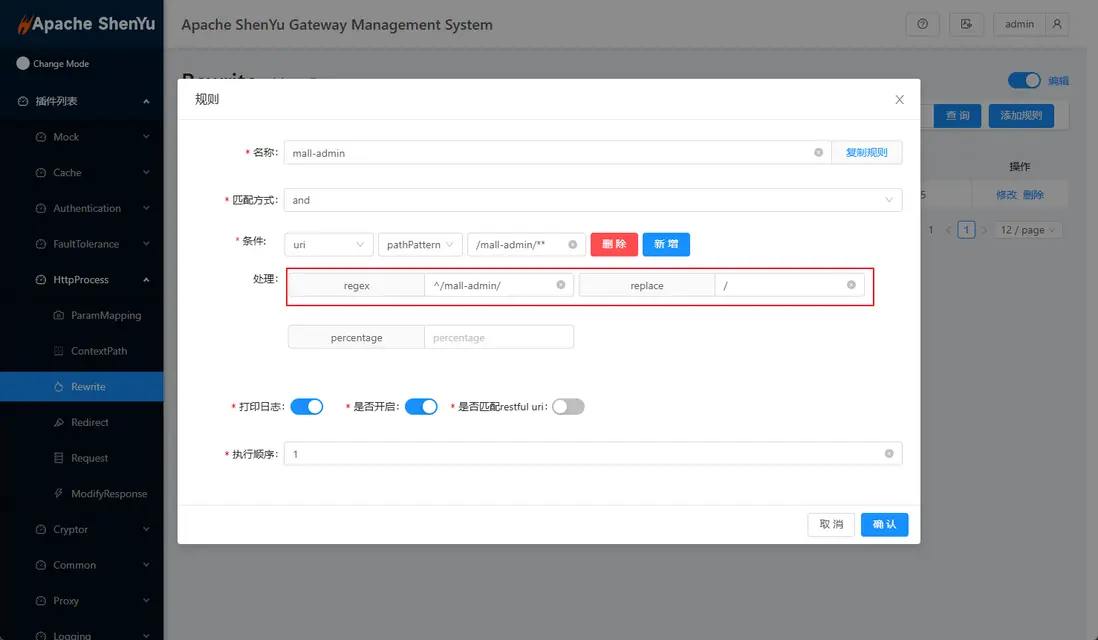 插件列表->HttpProcess->Rewrite中添加選擇器;