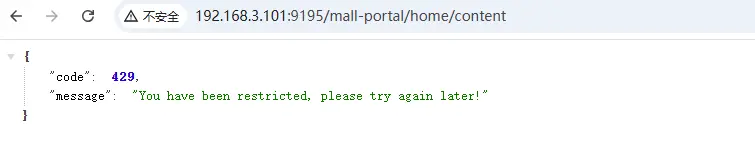 mall-portal中的某個接口,會提示你已經被限流了,接口地址:http://192.168.3.101:9195/mall-portal/home/content