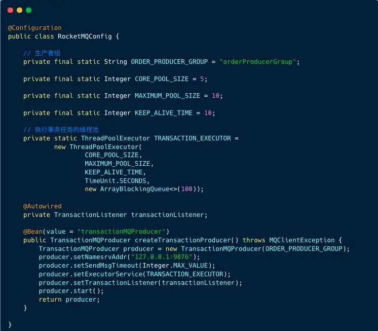 編寫一個實戰例子並不複雜,但使用事務消息時需要注意如下三點: