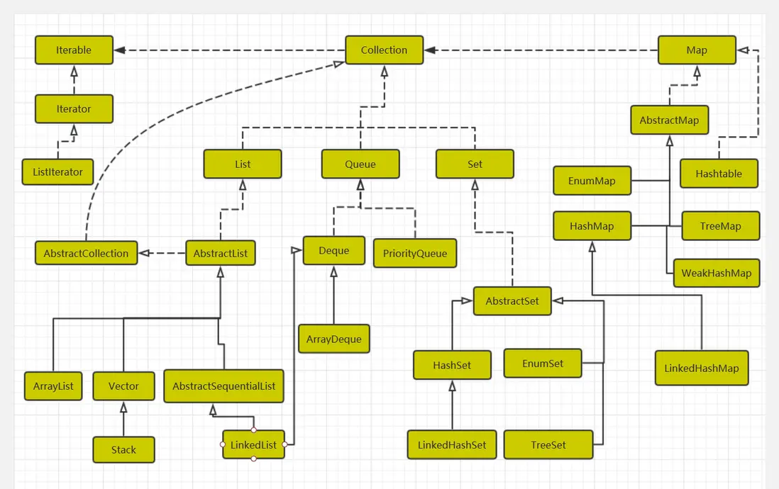Java集合框架位於java.util包下,主要包含List、Set、Map、Iterator和Arrays、Collections集合工具類,涉及的數據結構有數組、鏈表、隊列、鍵值映射等,Collection是一個抽象接口,對應List、Set兩類子接口,Map是key-value形式的鍵值映射接口,Iterator是集合遍歷的迭代器,下面是整體框架圖
