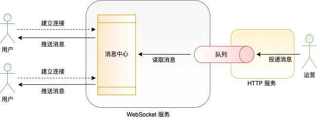 我想最直接的原因就是「開發起來簡單明瞭」,人性決定了人類都是趨易避難的高級物種,那個容易上手就用那個。但是我想表達的是除了長輪詢的方式外,WebSocket 技術其實也不難,只不過對於從來沒有接觸過長連接的人來説,剛開始上手時會有一些思維上的障礙。這次我分享的內容是基於 WebSocket 技術的消息推送中心,看起來很高大上,其實也就是通過一些小的例子來演示,從服務端推送數據到客户端的這個過程,接下來的例子簡單明瞭容易上手,我們趕緊開始吧。