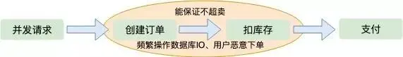 如果等待用户支付了訂單在減庫存,第一感覺就是不會少賣。但是這是併發架構的大忌,因為在極限併發情況下,用户可能會創建很多訂單,當庫存減為零的時候很多用户發現搶到的訂單支付不了了,這也就是所謂的 “超賣”。也不能避免併發操作數據庫磁盤 IO