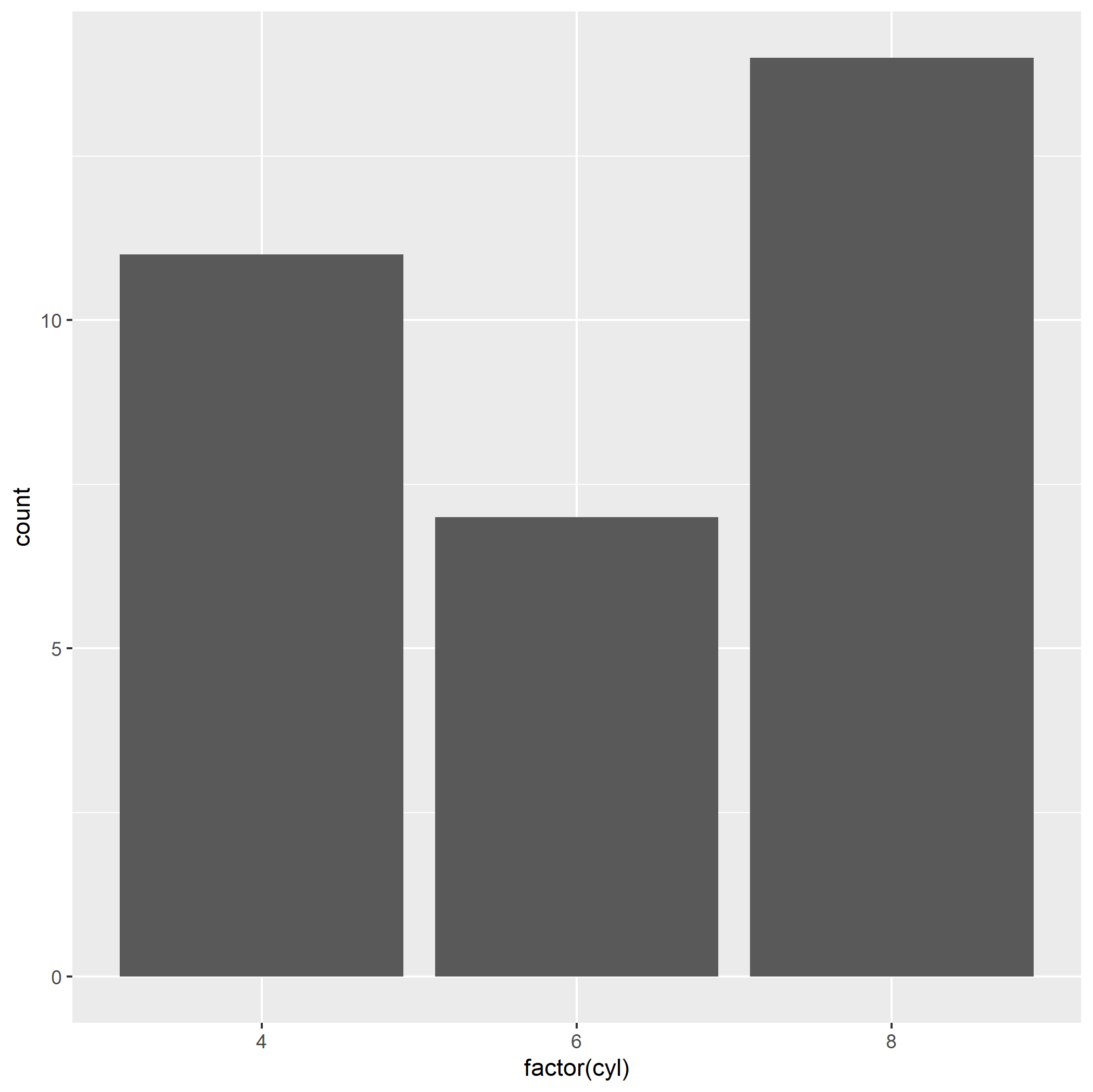 p <- ggplot(mtcars, aes(x = factor(cyl))) +