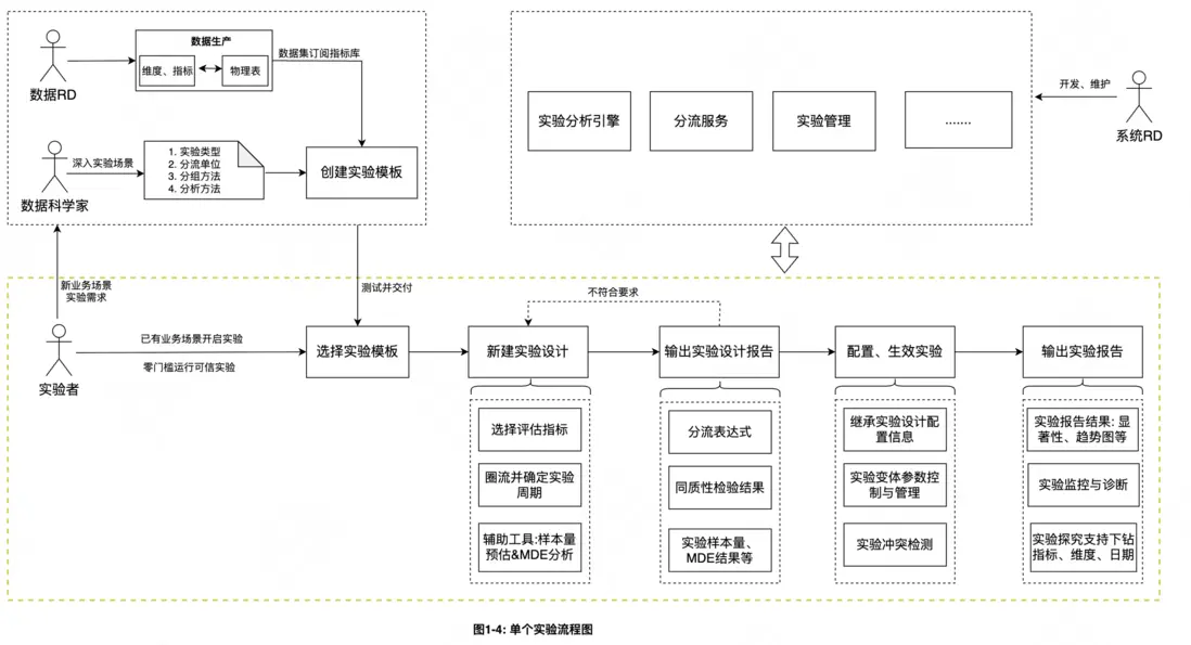 為了讓任何人都能擺脱AB測試重重困境,零門檻自主運行科學可信的實驗,美團履約技術團隊制定了一套數據科學家、數倉開發、系統開發多方協調保障的實驗接入與運營機制,通過科學的實驗方案、規範的實驗流程和正確的指標數據保證實驗可信度。對於新業務場景實驗,尤其是重點或複雜實驗,數據科學團隊全程參與,前置深入實驗場景,明確實驗痛點,攻克置信難題,制定匹配的實驗方案,並在實驗平台配置實驗模板。數倉開發為對應場景訂閲和維護關注的實驗指標數據集,保障指標定義規範與準確。與此同時數據科學家與系統研發人員共同規範化、模塊化平台實驗流程,允許對應算法場景後續可零門檻自主運行可信實驗。