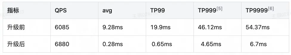 分析接口耗時統計:可得到以下數據,發現耗時均有明顯下降,9999線的下降量低於理論的17ms,由於實際環境中其他因素的影響也基本符合預期。