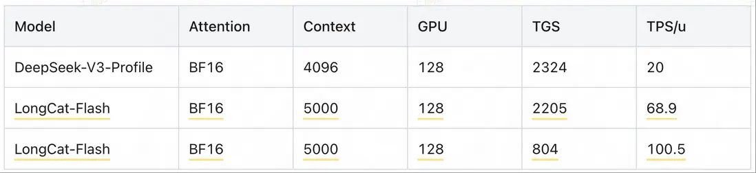 LongCat-Flash 在面向吞吐和延時的模型-系統的協同設計(Model-System Co-design)方面做了大量工作。這主要是因為我們更多希望 LongCat-Flash 能成為 Agent 場景下可以大規模使用的一個模型。正如我們在技術報告裏面所講,基於 ReACT 模式的智能體系統由於其多輪對話特性,對預填充(Prefill)和解碼(Decode)速度都提出了極高的要求,更快的響應速度,給用户端到端的體驗會更加明顯。為了解決 Prefill 和 Decode 的問題,我們分別設計了零專家機制和 Shortcut-connected MoE 結構來減少計算量和實現結構上的計算-通信重疊。