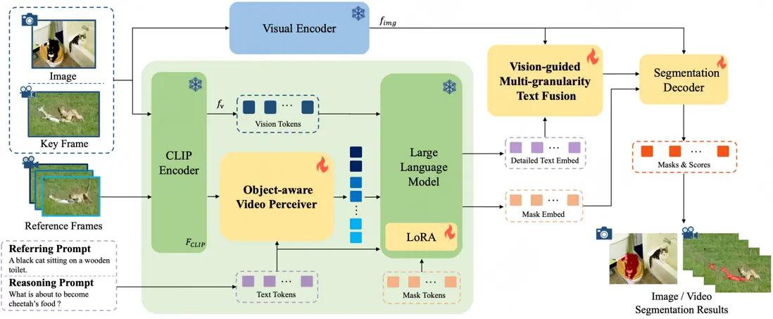 論文簡介:受多模態大型語言模型 (MLLM) 推動,用於圖像和視頻領域的文本引導通用分割模型近年來取得了快速發展。然而,這些方法通常是針對特定領域單獨開發的,而忽略了這兩個領域在任務設置和解決方案上的相似性。本文首先把圖像和視頻級的參考分割和推理分割的統一歸到指導視覺分割 (IVS)框架下,並提出了 InstructSeg,一種專用於 IVS任務 的 基於MLLM 的端到端分割模型。InstructSeg利用目標感知的視頻感知器從參考幀中提取時間和目標雙重信息,從而提升模型的視頻理解能力。此外,我們引入了視覺引導的多粒度文本融合,更好地將全局和細節的文本信息與細粒度的視覺引導相結合。通過利用多任務和端到端訓練,InstructSeg 在各類圖像和視頻任務中表現出色,僅通過單一模型超越了以往的分割專家模型和基於 MLLM 的方法。