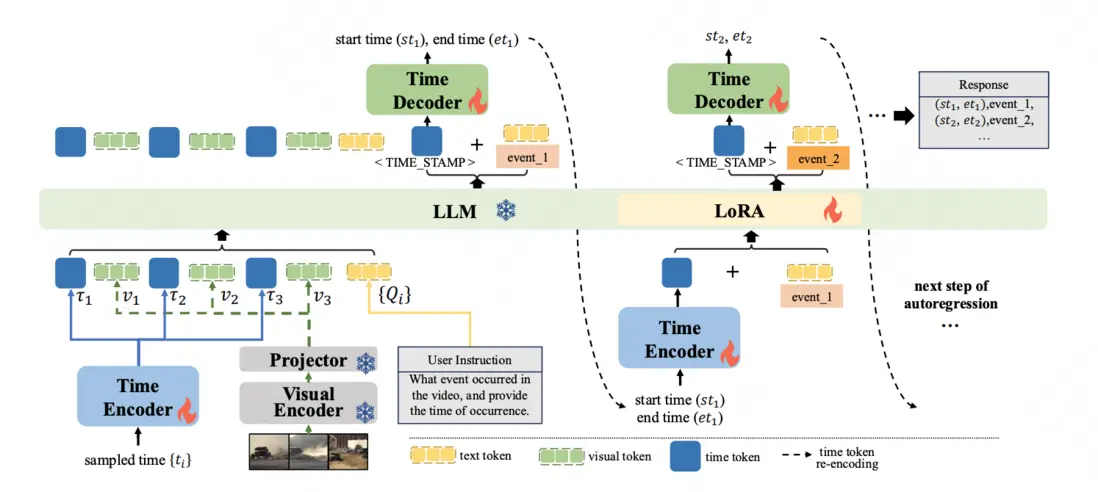 為了解決這些問題,我們引入了DisTime,這是一種輕量級框架,旨在增強視頻大型語言模型的時間理解能力。DisTime使用單個可學習的時間標記來創建一個連續的時間嵌入空間,並結合基於分佈的時間解碼器,生成時間概率分佈,有效緩解邊界模糊性並保持時間連續性。此外,基於分佈的時間編碼器重新編碼成時間戳,為視頻大型語言模型提供時間標記。為了克服現有無監督數據集中的時間粗粒度,我們提出了一種自動化標註模式,將視頻大型語言模型的描述能力與專用時間模型的時序定位相結合。這促進了InternVidTG的創建,這是一個包含17.9萬個視頻和125萬個時間定位事件的大型數據集,是ActivityNet-Caption的55倍。大量實驗表明,DisTime在三個不同的時間敏感任務的基準測試中達到了最先進的性能,同時在視頻問答任務中保持了競爭力。