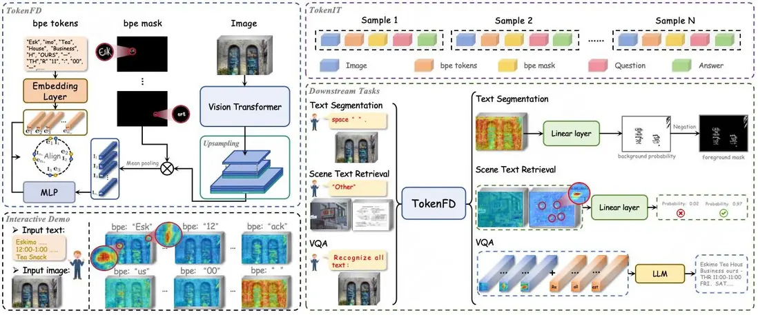 - 構建圖文領域首個細粒度大一統基座TokenFD:僅需通過簡單的一層語言編碼,依託億級的 BPE-Mask 對打造出細粒度基座 TokenFD。真正實現了圖像Token與語言Token在同一特徵空間中的共享,從而支持Token級的圖文交互和各種下游任務。