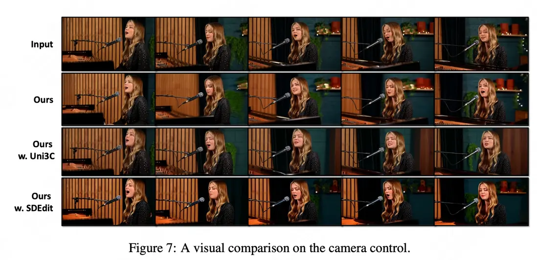 此外,該模型還能通過集成 SDEdit 或 Uni3C 等插件,實現對源視頻中微妙的鏡頭運動(Camera Movement)的精確保留。這一點至關重要,因為它確保了生成的視頻不僅人物動作自然,連畫面的構圖和運鏡都與源視頻保持一致,進一步提升了視頻的真實感和連貫性。