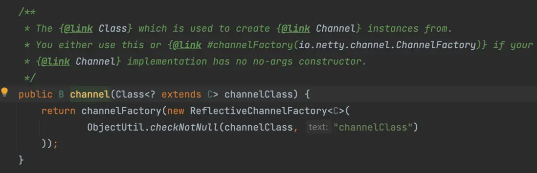 這個方法裏面通過new ReflectiveChannelFactory來獲取Channel的一個反射工廠,參數為ChannelClass,進入ReflectiveChannelFactory