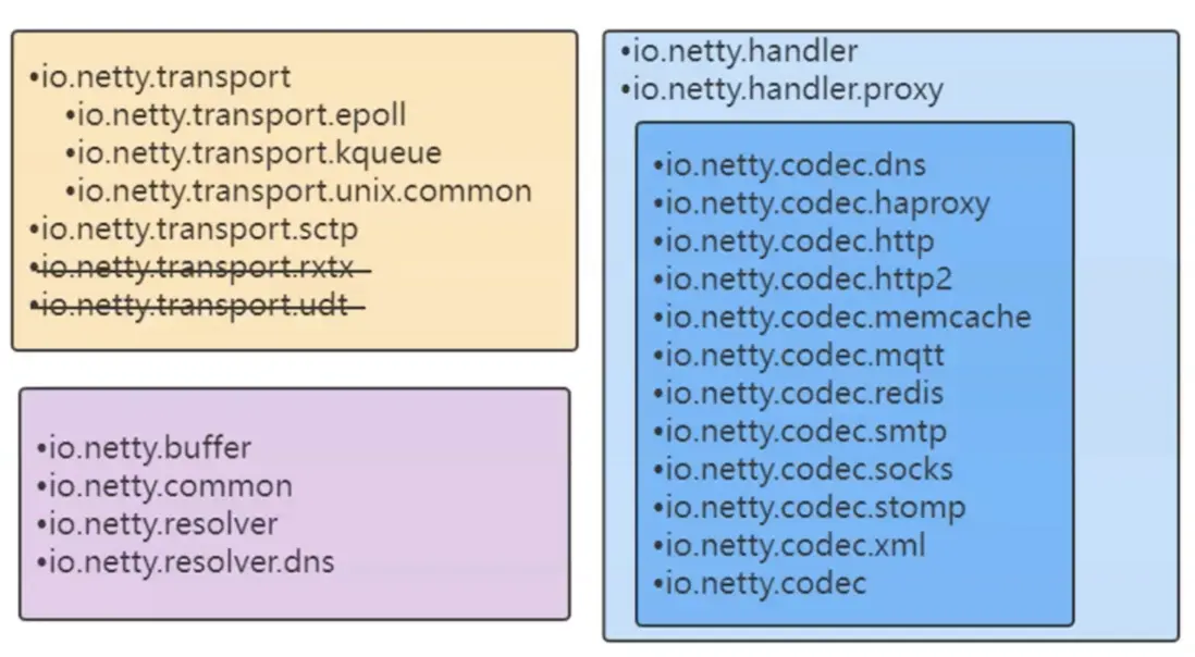 2.1 Netty源碼核心包主要分成下面幾塊: